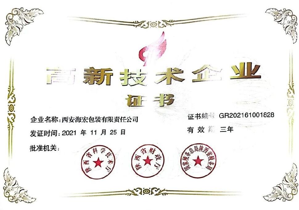 國家高新技術企業認定審查嚴格,能夠順利通過層層篩選并獲得認定,一方面,表明海宏公司在技術創新研發方面得到國家的大力認可和支持;另一方面,作為對海宏發展的充分肯定,此次認證將加速推動公司自主創新及研發的進程。未來,我司將繼續在紙包裝科技領域深耕布局,加大對核心技術的投入,實現高效長遠發展。